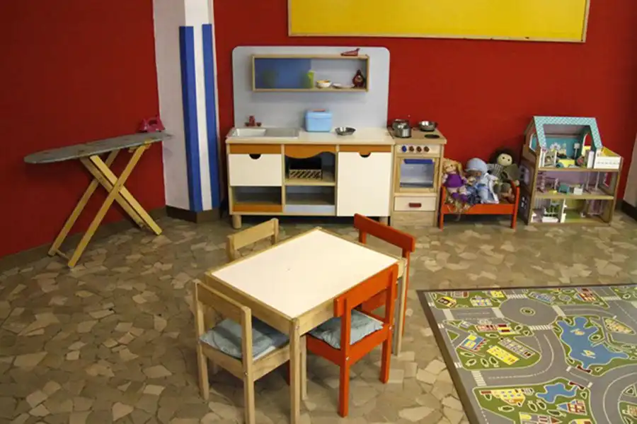 Infatti accoglie i laboratori di teatro e di psicomotricità, momenti di gioco libero, quando le condizioni atmosferiche non permettono di giocare all’aperto, spettacoli e drammatizzazioni in occasione delle varie festività a calendario.
